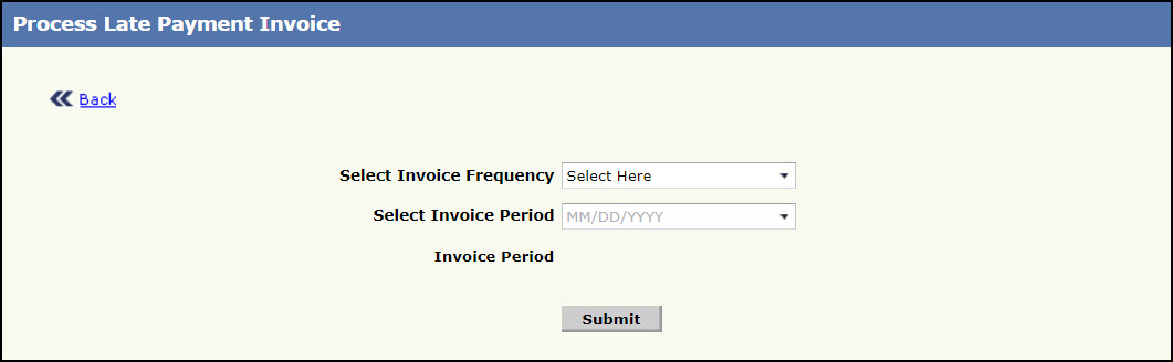 - Click Next, the Process Late Payment Invoice page 3 will be displayed. To go back to the Process Late Payment Invoice page 2, click Back.