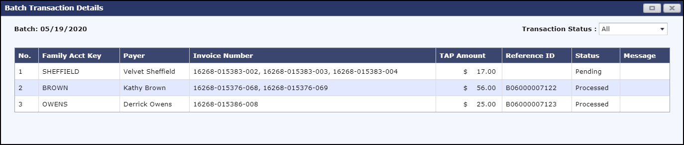 Batch Transaction Details Pop-up