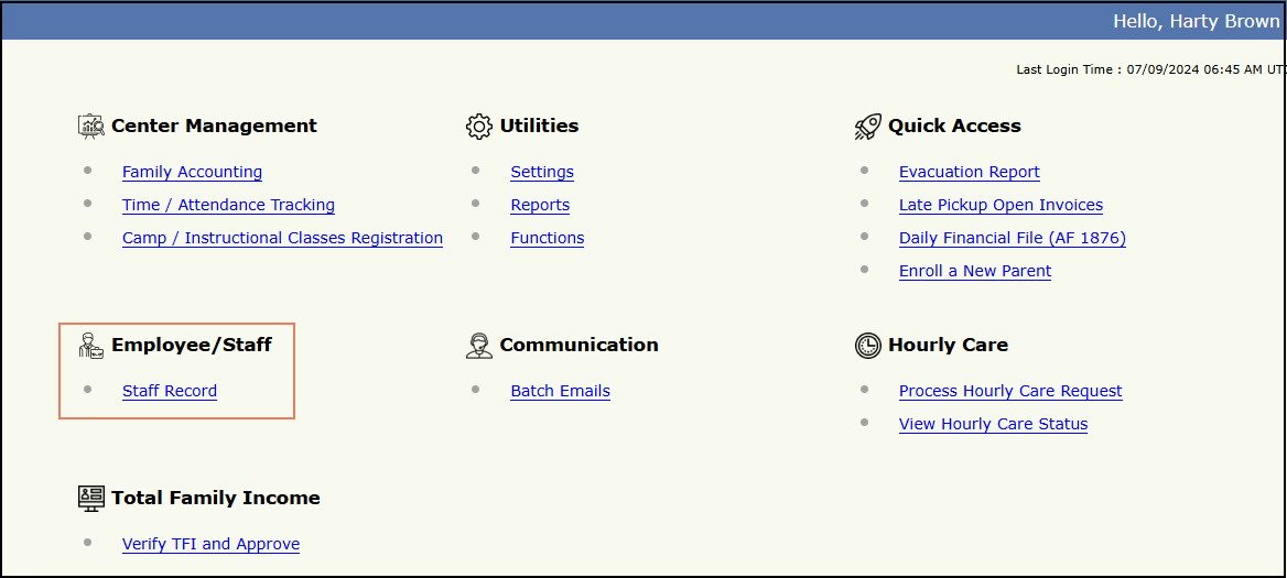 Clicking on the Staff Record (Figure 10) under Employee/Staff section will navigate the users to Staff Record list page. (Figure 11)