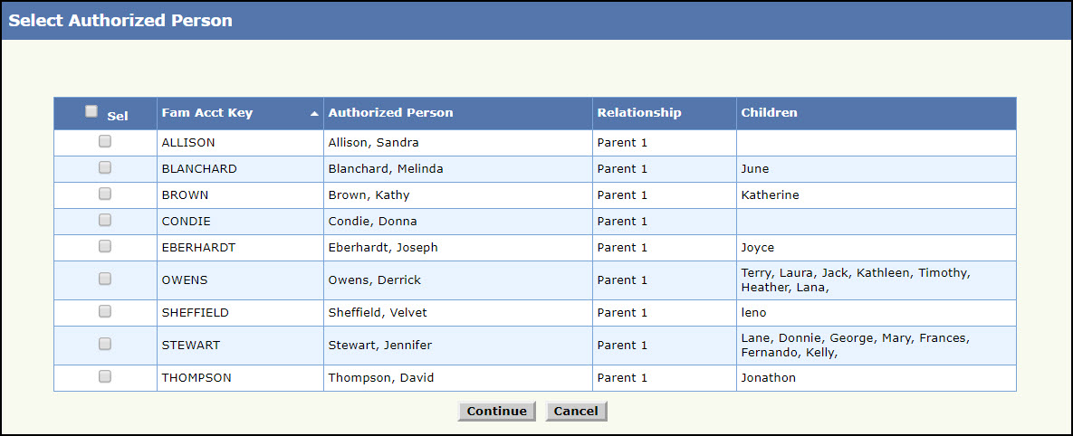 Note: By selecting the check box next to ‘Sel’ all the authorized persons will be selected.