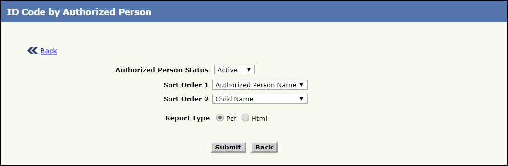 • Click ID Code by Authorized Person in the Reports page. The ID Code by Authorized Person page will be displayed